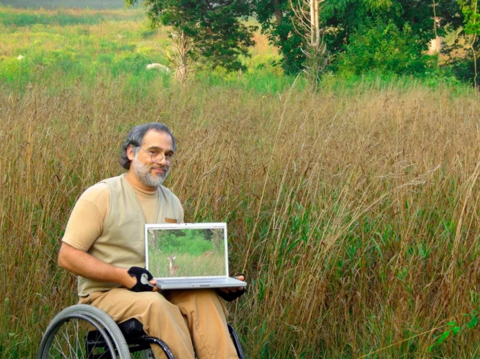 His lens also turned toward wildlife photography. Using patience, cracked corn, and a camera, Mark forged a spiritual connection with local deer. Sitting in his wheelchair brought him physically closer to their eye level—and spiritually closer to their world. Over time, he captured intimate portraits of these animals, a communion only possible because of his seated perspective.
